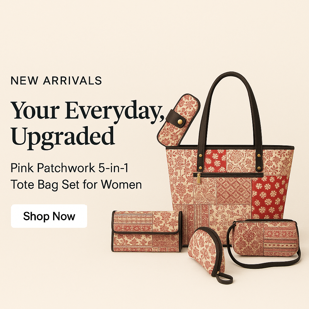 Pink Patchwork 5-in-1 Tote Bag Set for Women